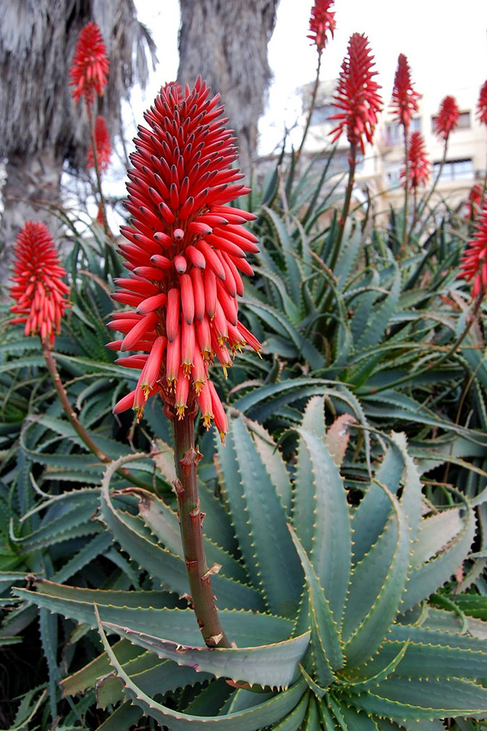Las flores aparecen sobre un tallo lateral de unos 60 cm de longitud, en una
