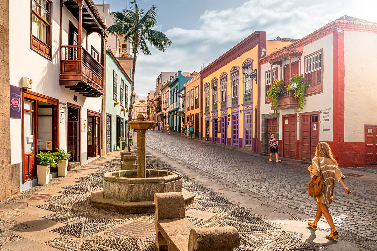 la Virgen; la plaza de San Francisco con el museo Insular; el Castillo de