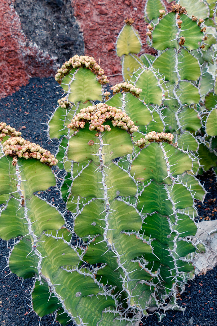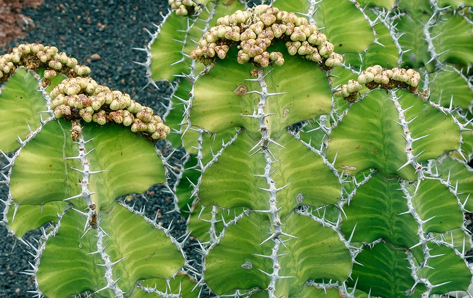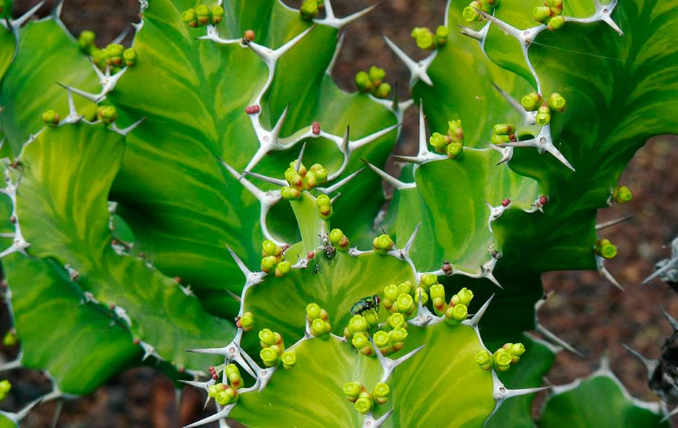 los tallos, sobre gruesos pedúnculos. Ciatios con un involucro