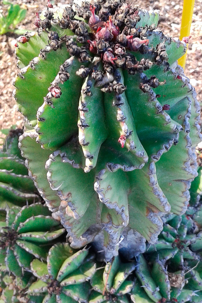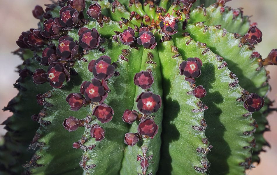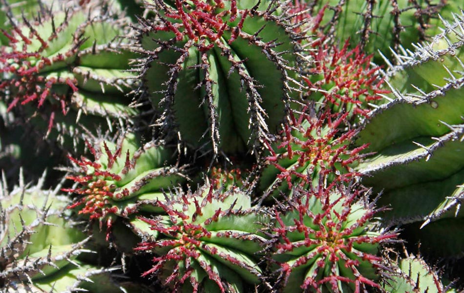 Euphorbia horrida es un cactus de crecimiento erecto cilíndrico