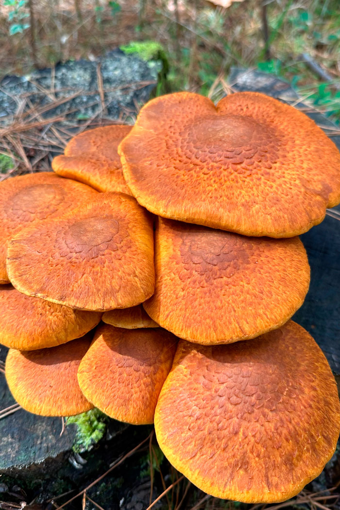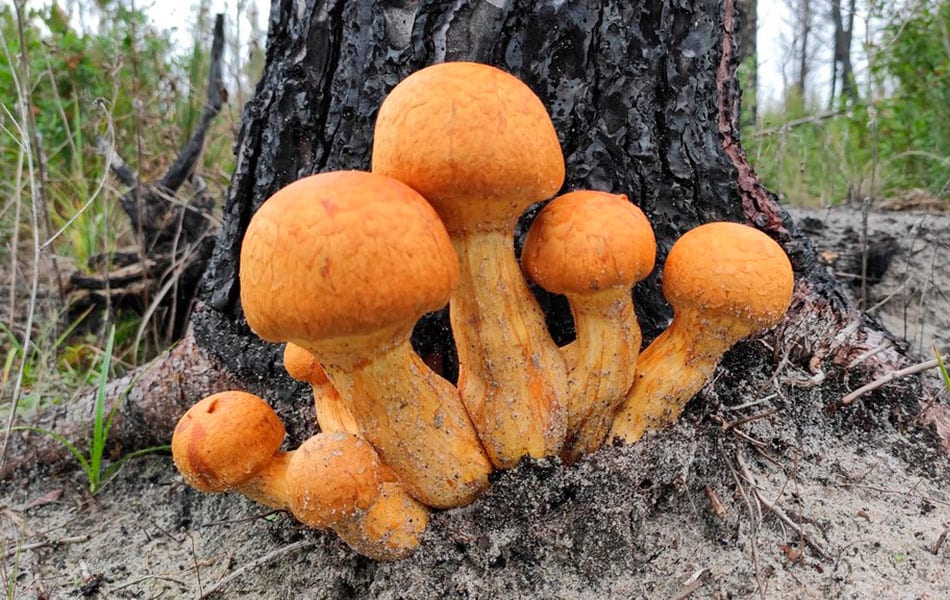 Foliota de los pinos, Foliota anaranjada, Seta de la risa, Risueña